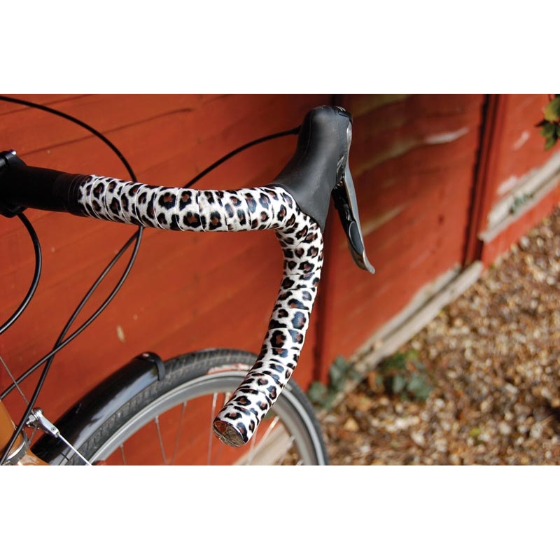 Leopard Skin print design animal Tape, Pvc - Anti Slip surface, self adhesive centre, with plugs & finish tape.Non-slip, padded PU drop bar tape.Modern, durable, non- slip padded bar tape in a fun Leopard Skin style print. Anti-slip, durable outerSoft EVA